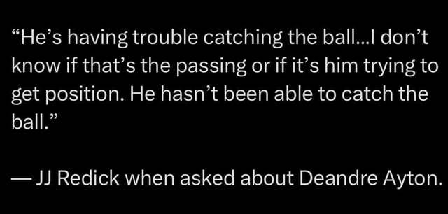 季后赛前夜,湖人主帅JJ·雷迪克把德安德烈·艾顿单独拎出来开了刀。记者会上他语气平淡,说艾顿"接球有困难",像在说一台打印机卡纸。但球迷显微镜已经架好——有人翻出艾顿赛前猛灌某功能饮料的画面,评论区瞬间被"crunk juice"(嗨爆果汁)刷屏。