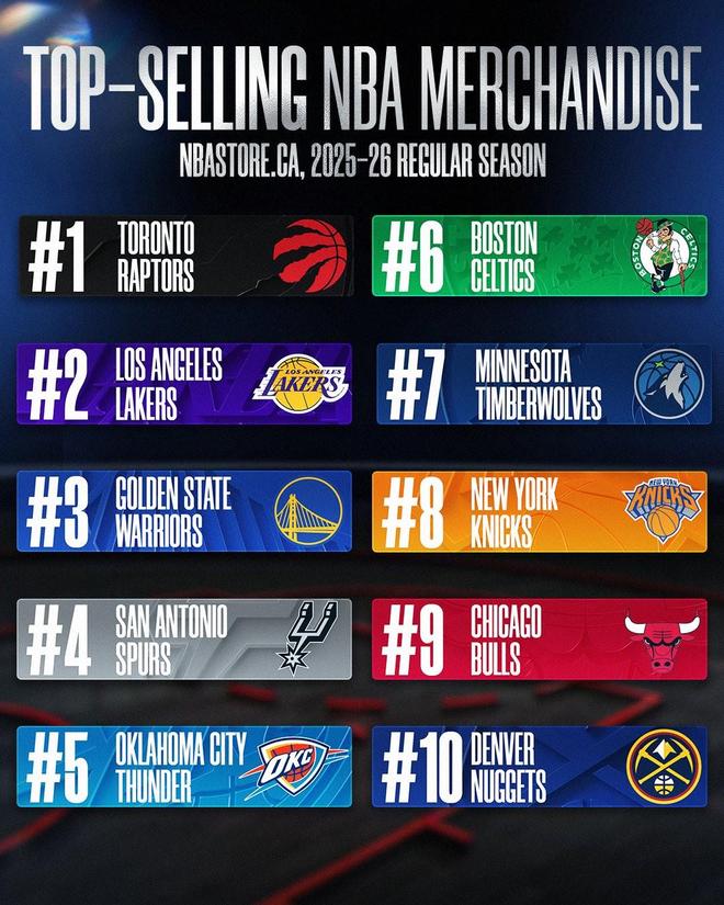 NBA加拿大官方社交媒体账号公布了本赛季NBA球衣在加拿大地区的销量排行榜,多伦多猛龙的球员斯科蒂-巴恩斯销量位列第一,勇士队的斯蒂芬-库里位列第二。