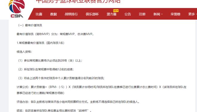 第一,常规赛出场大于等于28场;第二,球队进季后赛,该要求会筛掉很多球员,例如同曦男篮本土得分王郭昊文;第三,符合上述两个条件的球员,个人累计贡献值需排前20。而主要影响个人累计贡献值的数据就是正负值、出场时间。这样一来,人气很高的广东球员胡明轩也基本无缘,因为他本赛季贡献值很低,投篮命中率只有35.6%。