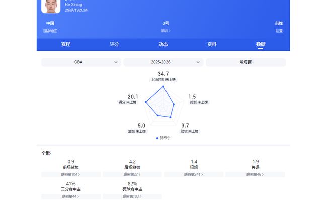联赛38轮过后,深圳男篮高居联赛第三,很可能会以前四身份避开季后赛附加赛。而贺希宁目前仍是满勤,38轮场场出战,且场均能出场34.6分钟,出场时间高居联盟第二。