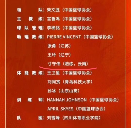 该新面孔名为寸守伟,前CBA球员,2米08的中锋,共在CBA征战6个赛季,曾效力青岛男篮和广厦男篮,但职业生涯累计仅出场64次。他大概率会是张子宇或女篮内线球员的配线,毕竟他中锋出身,有身高、有身体。