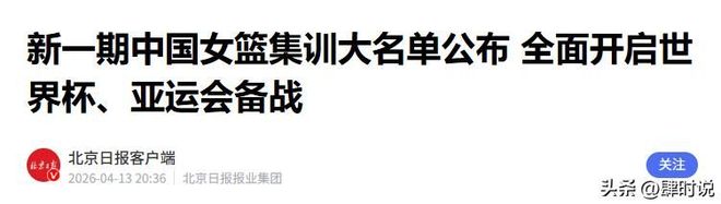北京日报客户端 2026-04-13——新一期中国女篮集训大名单公布 全面开启世界杯、亚运会备战