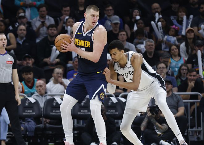 如果满分是100分的话,单就文班亚马的成长速度来说,进联盟第一赛季就是87分的水平,第二赛季到了90分,本赛季到了95分,谁敢想他未来能到什么高度?此外文班亚马也才只有22岁,他已经可以带队本赛季常规赛4-1压制住雷霆了。但是,和约基奇的正面交手,文班亚马输掉关键一盘;收官战文班亚马不打,约基奇带队再度击败马刺,球队又输掉一盘,这两场败仗,也让人看到这支马刺的不足,以及文班亚马的短板。没有人能像约基奇那样统治进攻端,可问题关键是为什么马刺就是打不过掘金?