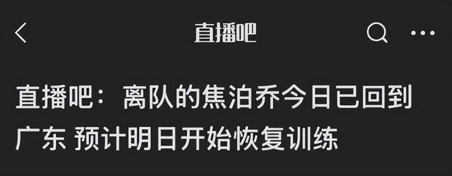 对广东男篮来说也有好消息,根据国内媒体直播吧透露的消息,之前离队的内线大将焦泊乔,已经返回了广东,预计会在15日开启训练。焦泊乔前一段时间暂时离队,杜锋在接受采访时表示焦泊乔要处理私事,他和焦泊乔也一直在沟通。不过按照媒体透露的消息,焦泊乔离队的真正原因是心理出现了问题,他在广东男篮打得太压抑了,甚至快要抑郁了。对此不少球迷都认为,杜锋的口吐芬芳给焦泊乔造成了很大压力,这才让焦泊乔的心理出现了问题。