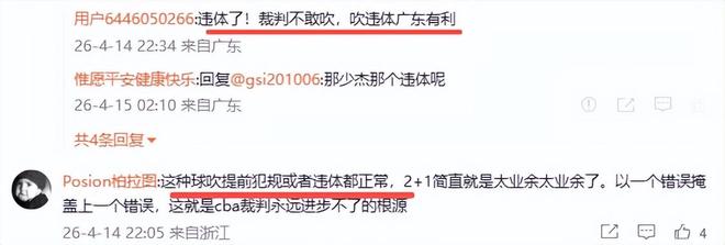 不过徐杰的2+1,不管吹得正确与否,主动权都掌握在广东队一边,即便不是2+1,徐杰也可以执行罚球,他罚球命中率高拿2分不成问题,广东或74比71领先。有位浙江IP的球迷说,“这种球吹提前犯规或者违体都正常,2+1简直就是太业余太业余了。以一个错误掩盖上一个错误,这就是cba裁判永远进步不了的根源”。广东球迷说,用王少杰违体的标准来衡量,宁鸿宇后面拉人已属违体,是一个漏判。