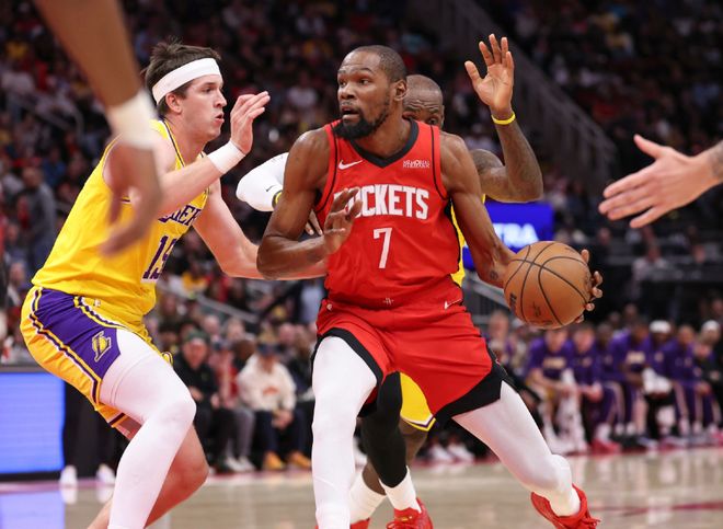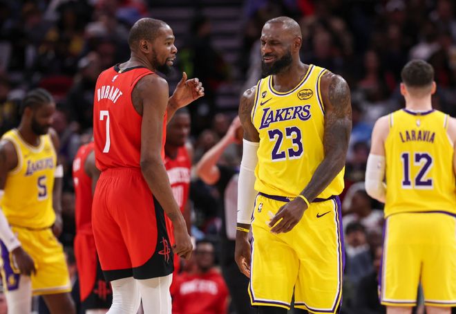 所有压力自然都来到詹姆斯这里!实话实说,火箭本赛季存在很多明显短板,比如没有控卫节奏一塌糊涂,比如杜兰特怕被包夹,比如阿门+申京没有任何投射能力,包括中距离,还有谢泼德虽然有射程,但也容易被针对点名。但火箭的防守配置,湖人怎么破?被忽略的一点,为什么我要列出东里组合两人的净胜分,以及加上詹姆斯以后,三人的百回合净胜分?那两个数据按比例相减,不难得出结论,老詹虽然在41岁的年纪,本赛季场均21分6篮板7助攻的全能数据,但是论在场效果,他并不适配东里组合。