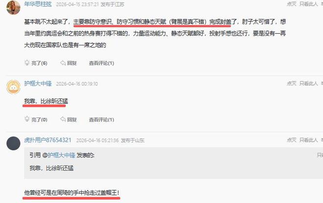 还有球迷赞扬:“真是开火锅店了,这8个盖帽实属没想到”、“我靠,比徐昕还猛”。球迷回忆说,邹雨宸刚出道的时候 ,从周琦的手里抢走过盖帽王。尽管后来遭到多次伤病的打击,现已成为老将,仍然单场送出8记大帽,实在牛逼,值得一吹。你们说呢?你对邹雨宸本场比赛有何评价?