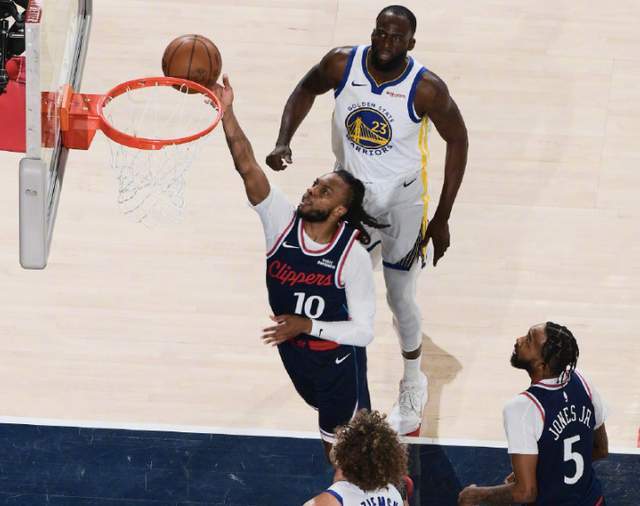 次节比赛,快船进攻陷入低迷,2分多钟一分未得,波尔津吉斯三分命中,勇士打出一波13-0攻势反超比分。邓恩三分命中止血,加兰随后三分也进,帮助快船稳住,勇士未能延续势头,加兰突破打进,伦纳德跳投命中,快船重新占据主动。勇士随后继续追分,伦纳德突破打成2+1,小琼斯双手暴扣,接着三分命中,打出8-0攻势取得10分领先。波杰姆斯基和库里相继命中三分追分,马瑟林三分命中稳住,伦纳德突破扣篮得手,半场快船61-53领先勇士。