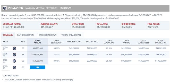 伦纳德还剩26-27赛季价值5030万的合同,这不是球员选项,但他很有可能在今夏提出交易申请,因为这支快船实际上已经进入了重建期。(快船自2022年后首次无缘季后赛,雷霆则获得26年一个没有保护的乐透签)