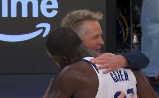 此时科尔抱住格林,显得非常兴奋。因为之前科尔一直都在肯定格林的防守能力,这场比赛终于没有辜负科尔的这种信任了。