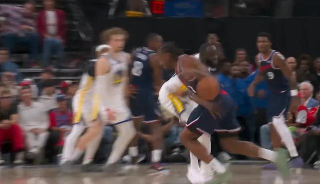 但在大部分的时间里,快船依然是比勇士表现更好的球队。末节上来,勇士连续失误,快船迅速将分差拉大到13分,镜头给到场下的库里,双眼无神咬着毛巾。库里一下去,勇士就崩盘,这成为了勇士这赛季大多数比赛的写照,但在今天,勇士没有让颓势继续。