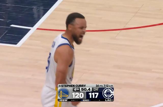 进入最后一分钟前,双方打成117平,库里运球摆脱两人的追防,三分出手命中,勇士努力了一整场终见胜利曙光,但比赛还没结束,真正决定比赛胜负的人,是追梦。