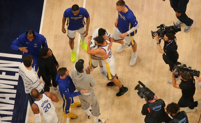 赛后,库里和追梦拥抱,巴特勒和库里拥抱,科尔和库里拥抱,这一幕幕真的很让人感慨,这支过去十多年间NBA最伟大的团队,在行将落幕的时刻,依然能打出这样的比赛。
