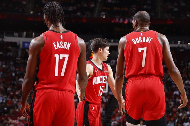 还有两天的时间,火箭队将和湖人队进行季后赛的第1场对决,这也是季后赛首轮的焦点之战,毕竟两支球队的球迷都非常多。湖人队拥有三巨头詹姆斯、里夫斯和东契奇,而休斯敦火箭队也有两位全明星级球员杜兰特和阿尔佩伦·申京,两支球队在常规赛里可以说半斤八两,一个西部第四,一个西部第五。虽说火箭队在常规赛里1比2不敌湖人队,但火箭队更多的时候是在关键时刻输球,而非整体实力不如对手。