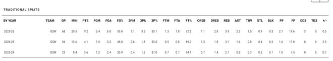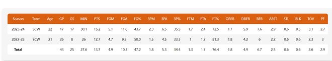 桑托斯是在2022年次轮55顺位被勇士选中的球员,但勇士只跟他签下了一份双向合同,他在G联赛打满了整个赛季,23-24赛季他也只为勇士打了23场比赛,而在G联赛打了17场比赛。