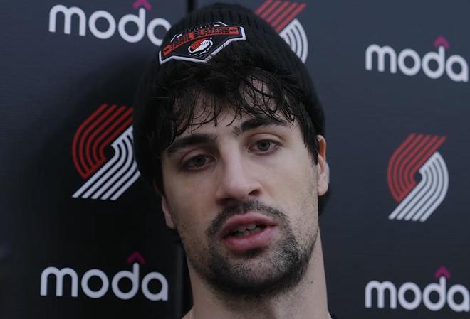 北京时间4月16日,在NBA季后赛首轮对阵马刺队赛前,开拓者球员阿夫迪亚接受了媒体的采访。