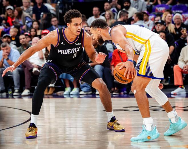 4月18日NBA附加赛继续进行,随着魔术大比分淘汰黄蜂,东部8强最终全部出炉,接下来要进行是本赛季最后一场附加赛,金州勇士客场挑战菲尼克斯太阳队,双方争夺西部第八最后一个附加赛名额!本场比赛双方都排出了现有最强阵容,太阳这边马威缺阵不打,伊戈达罗顶到5号位搭档古德温、杰伦·格林、布克、狄龙先发,勇士这边沿用上一场库里、波杰姆斯基、桑托斯、追梦、波尔津吉斯的先发五人组!本场比赛对于勇士来说就像需要效仿开拓者一样锁死布克,不能让其舒服的找到得分节奏,同时由于马威不打需要利用好波尔津吉斯+追梦+霍福德的内线优势,库里外线需要打出匹配杰伦格林+布克组合的火力输出!太阳这边则需要做好防守,避免让勇士舒服的进入熟悉的传切节奏,当然狄龙+古德温等防守悍将能给库里制造多少麻烦至关重要,话不多说一起进入比赛!