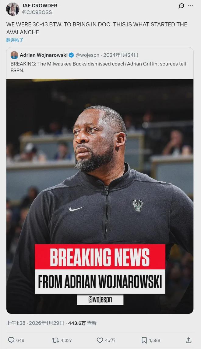 2024年1月24日,雄鹿解雇主教练阿德里安-格里芬,当时雄鹿的战绩30胜13负高居东部第二。两天之后,雄鹿开出4000万美元的大合同,把里弗斯从ESPN挖了过来。老里心想:我也不想回NBA啊,没办法雄鹿给的太多了!