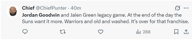 太阳媒体:古德温与杰伦格林对于这场比赛意义非凡,太阳渴望胜利,很明显勇士已经老去,他们的时代已经结束了。