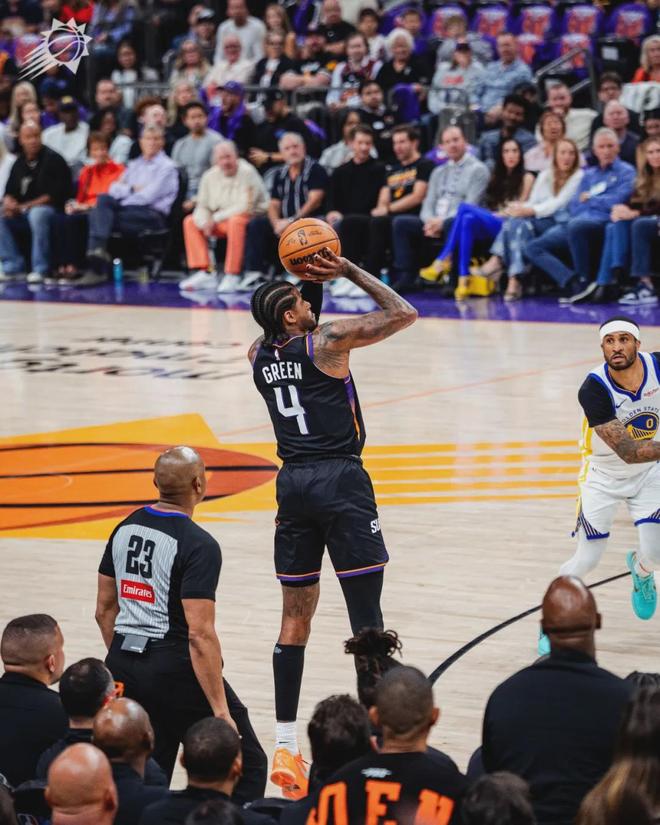 太阳首发:乔丹-古德温、杰伦-格林、布克、狄龙、伊戈达罗。勇士首发:库里、波杰姆斯基、桑托斯、追梦格林、波尔津吉斯。杰伦-格林赛前表示:“打勇士一定要保持侵略性,不断冲击篮筐。”上一场打开拓者,杰伦-格林狂砍35分。