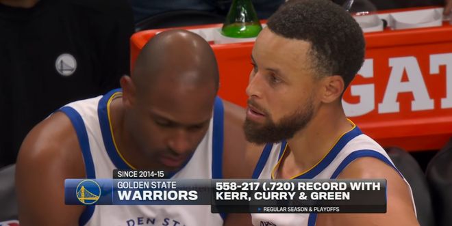 去年季后赛,当时还在火箭的杰伦格林在对阵勇士的系列赛里严重失常,7场比赛,场均只有13.3分5.4篮板2.9助攻,三项命中率37.2%/29.5%/66.7%,真实命中率48.2%。