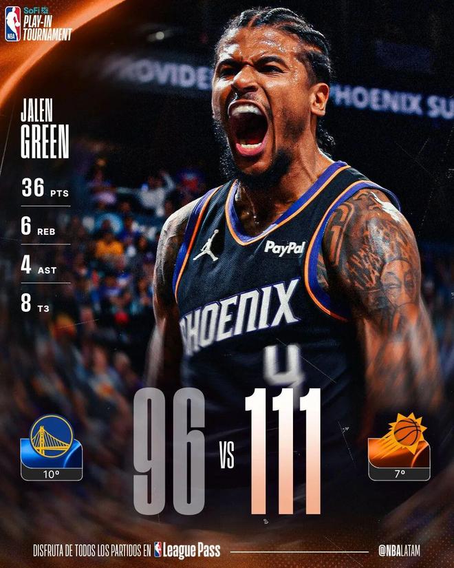 附加赛第二轮,太阳主场111-96战胜勇士。
