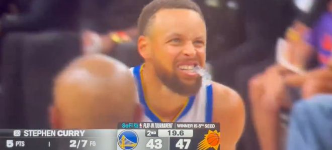 但需要注意的是,这场库里是带着伤病在打,第二节的一次摔倒之后,库里的膝盖明显出现不适,下半场走路都是一瘸一拐。