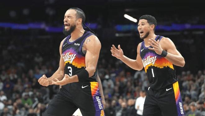 另一边的太阳队,常规赛45胜37负排名西部第7,比起勇士,他们的阵容深度更厚实一些,而相比上个赛季,他们虽然少了杜兰特和比尔两个绝对核心,但迎来的新援狄龙和杰伦格林,都很快适应了新队伍,并且非常适配球队,布克作为当家球星也一直稳定发挥。只不过太阳想要闯进季后赛,或者在季后赛更进一步,布克需要拿出更好的表现,印象中23年季后赛的布克,和杜兰特硬刚约基奇穆雷二人组,拿出那个状态,太阳就有希望晋级。本场比赛,双方在首发阵容上面,勇士这边派出的是,库里,波杰姆斯基,桑托斯,追梦格林,波尔津吉斯。