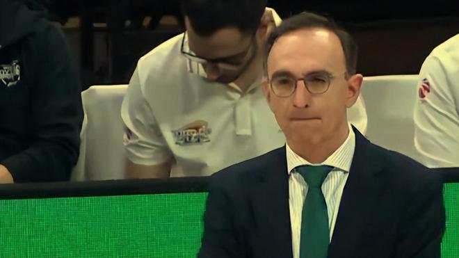 比赛还剩三分半钟的时候,洛佩斯再次把莫兰德换上场去对位约翰逊,因为只有他勉强能跟约翰逊对上,其他的更不行。
