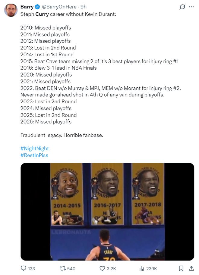 库里的生涯具有一定的欺诈性。(感觉他们用库里的头像是为了黑库里)