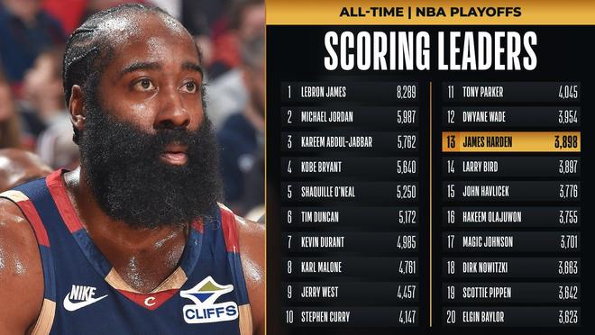 此役也是詹姆斯-哈登的里程碑之夜,他在季后赛的得分来到3898+分超越了绿凯名宿拉里-伯德,哈登有着超多的中国球迷。