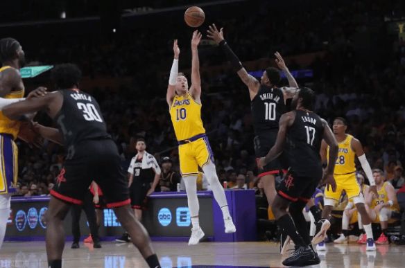 比赛从首节就埋下伏笔。肯纳德手感烫到冒烟,两记三分+中投独揽11分,湖人开局8-0打懵火箭。次节双方陷入拉锯,但艾顿内线19分11篮板硬刚申京(19中6仅19分),八村塁10中6高效砍14分,斯玛特15分8助攻2帽攻防一体——角色球员全员敢打敢拼!