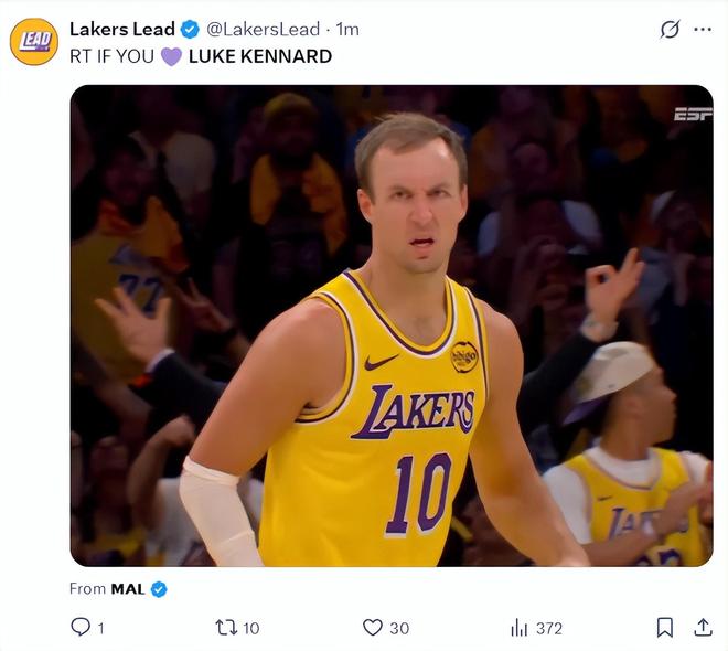 甚至有湖人球迷已经开始盛赞肯纳德是GOAT了。(实际上肯纳德只是一个拿着一年1100万合同的角色球员而已)