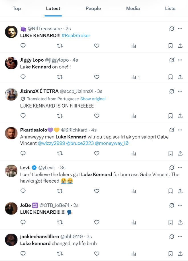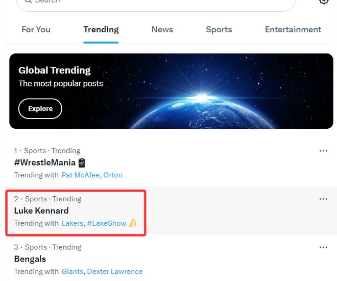 比赛还没打完,卢克-肯纳德已经登上了全美第二热搜。