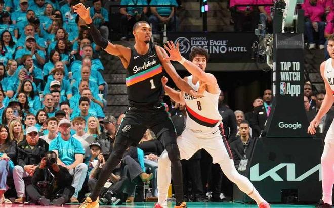 下半场一上来马刺4次投篮打铁,开拓者打出进攻高潮分差直接被缩小到2分,米奇拿下文班亚马,尚帕尼、瓦塞尔3次三分球,卡斯尔4罚全中马刺重新拉开双位数分差,开拓者很顽强但是无奈整体实力差距,最后52.8秒杨瀚森登场,最终马刺主场111-98战胜开拓者系列赛开门红!