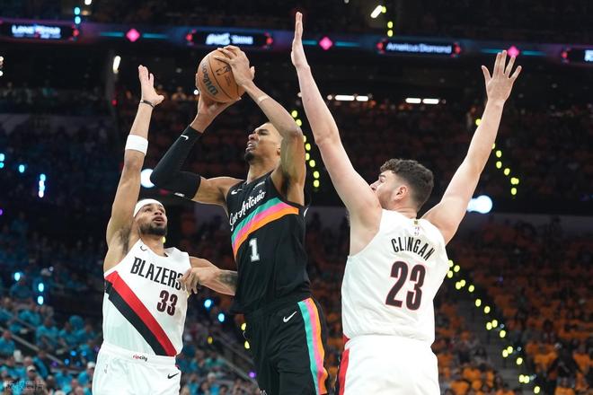 那么,此役马刺赢球的功臣是谁呢?1、文班亚马的实力真是怪兽级别!生涯季后赛首秀上半场狂轰21分,是NBA自97-98赛季有数据统计以来历史最高。开拓者这边,无论是克林根跟不上文班亚马,攻守两端都被完爆,罗威上场后,进攻端能提供一点帮助,但是防守端同样限制不住文班。末节比赛,文班再度爆发,连拿9分,全场比赛21中13,3分6中5,罚球5中4,得到35分5篮板1助攻。此役,文班创下马刺队史季后赛首秀得分最高纪录!