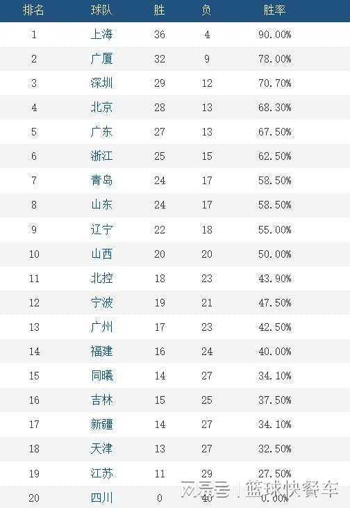 积分榜第10名则属于山西队,他们的战绩为20胜20负。而积分榜第11名的球队则是北控队,这一轮比赛他们输给了广厦,战绩变成18胜23负。而积分榜第12名则是宁波队,他们的战绩为19胜21负,只不过,由于少赛一场的缘故,宁波队在排名上稍微吃亏。第13名则属于广州队,战绩为17胜23负,截止到目前,也就只剩下北控、宁波和广州,这三支还没有确定季后赛。