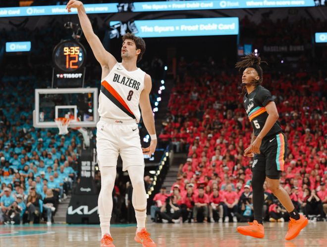 正处于重建期的开拓者,本赛季的表现远超预期,不仅成为了联盟中名副其实的强队克星,还以42胜40负的战绩获得了附加赛的资格,在远征凤凰城和菲尼克斯太阳的附加赛中,开拓者靠着阿夫迪亚天神下凡的表现,客场凯旋获得了挑战马刺的资格。