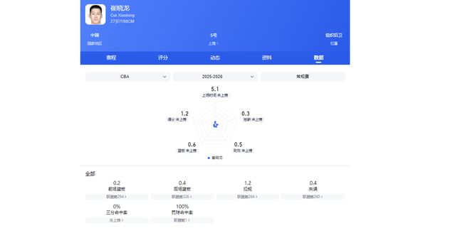 崔晓龙效力江苏男篮期间是队内核心后场,四个赛季下来的场均出场时间能在20分钟以上,场均出手能达到近10次。本赛季来到上海男篮后,崔晓龙目前0首发,场均出场时间仅5分钟,毫无战术地位可言。