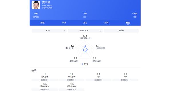 本赛季来到辽篮后,他的数据全方位下滑,场均只有5分2篮板左右。比赛中由于辽篮缺少空间型四、五号位,导致姜宇星擅长的空切也无计可施,打的也非常挣扎。