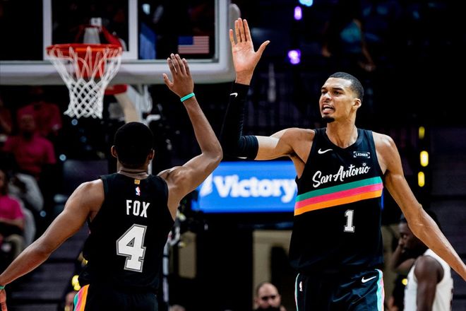 时隔七年的时间,马刺队再一次站在了西部季后赛的舞台之上,球队坐镇AT&T中心迎来了开拓者队的挑战,这一场比赛不仅是对于马刺队这些第一次打季后赛的年轻球员,对于马刺队球迷来说,同样是非常兴奋、同时也是非常幸福的,毕竟等了7年的时间,球队终于又踏上了这样的舞台。比赛一上来,作为球队核心的文班亚马就毫不怯场,丝毫不想第一次打季后赛的球员,连续进攻帮助球队得分,单节比赛马刺队就取得了30-21的领先,后续三节比赛马刺队稳扎稳打,最终以111-98战胜对手,成功拿到系列赛的开门红。