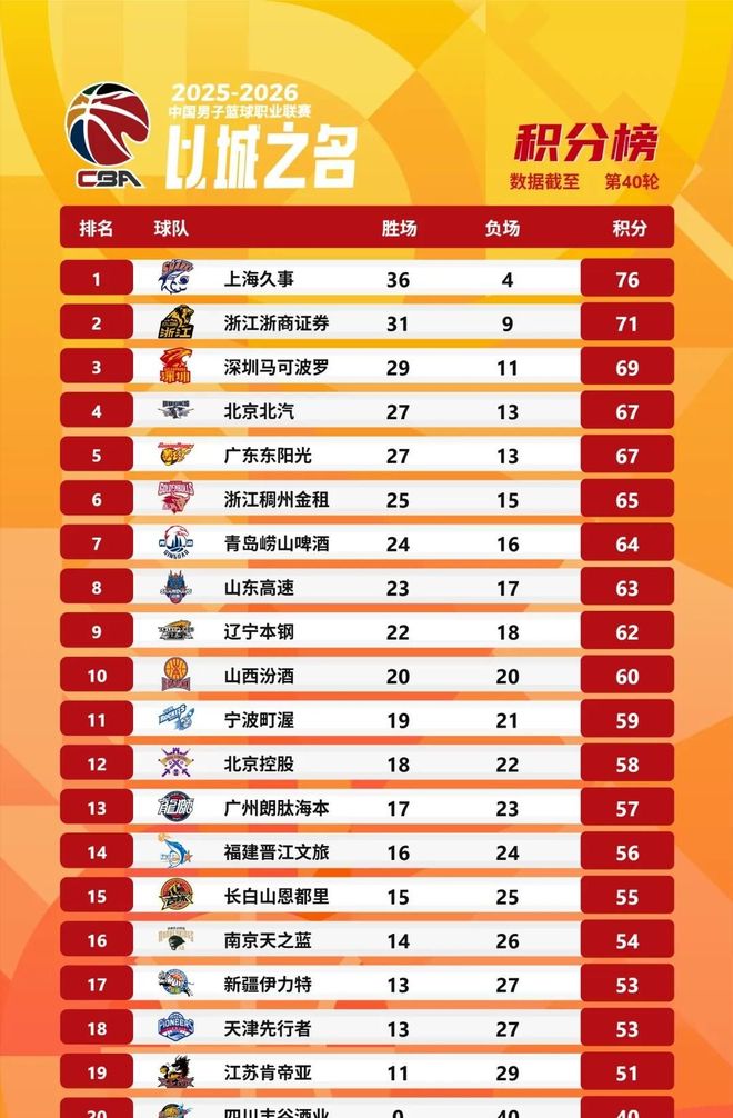 山东力克深圳,广厦、北京同步翻盘,整个联赛排名格局瞬间风云突变……