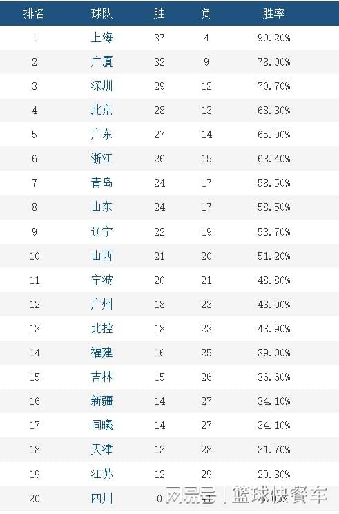 附:CBA积分榜最新排名