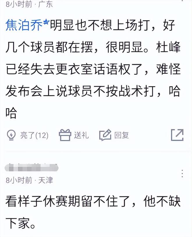 就昨晚焦泊乔这样出工不出力的表现,绝对是该骂的,别管是不是刚刚复出状态不佳,别管以前在杜锋手底下遭受了多少委屈,也别管休赛期是否真的要离队,作为一个职业球员,既然选择了回归比赛,上了场就该拿出该有的竞技状态,把比赛打好,用行动去打脸杜锋,而不是用摆烂去报复杜锋。