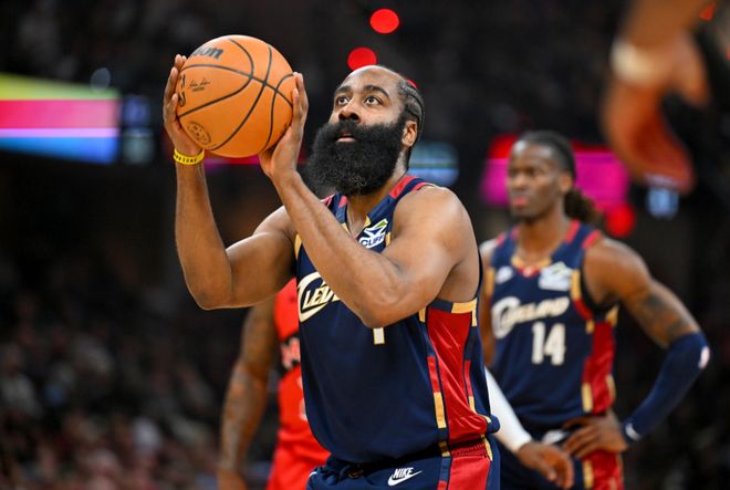 骑士:米切尔30分7篮板5助攻,哈登28分5篮板4助攻5抢断1盖帽,莫布利25分8篮板,阿伦10分3盖帽。