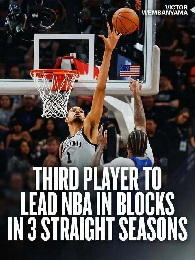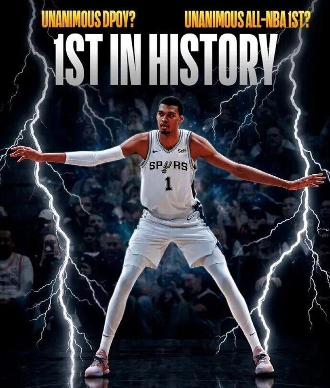 NBA官宣文班亚马,全票当选最佳防守球员。