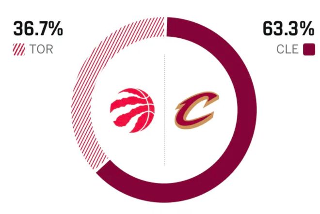 赛前,美媒ESPN对本场比赛进行了胜率预测,骑士队胜率高达63.7% ,猛龙胜率则仅有36.3% ,差距更加明显。