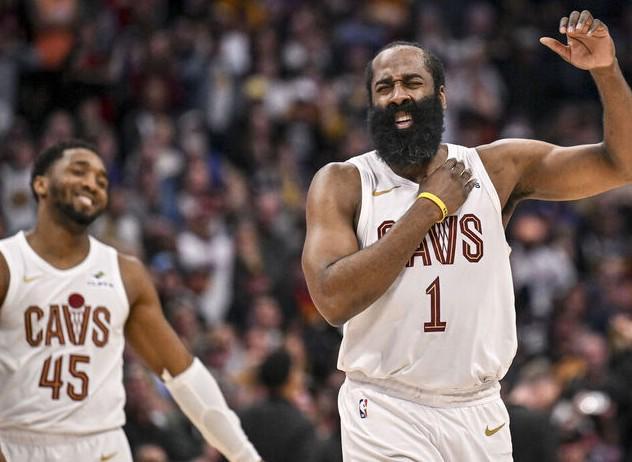 北京时间2026年4月21日,克利夫兰骑士队在季后赛G2战胜多伦多猛龙后,多诺万-米切尔和詹姆斯-哈登在赛后媒体环节上演了一段欢乐互动。
