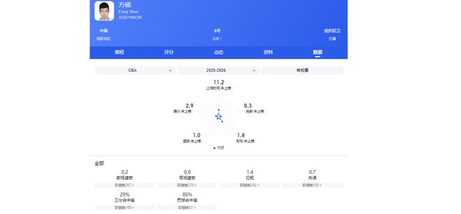 方硕是90年球员,下赛季就将37岁,早已处在老将行列,竞技状态无法保障。毕竟本赛季他的场均数据仅有2.9分1.8助攻。