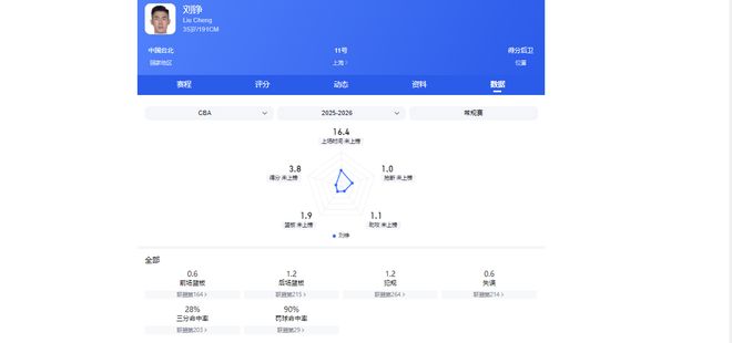 90年出生的刘铮,本赛季油箱里的油已明显不足,防守积极性还在,但进攻能力严重下滑。